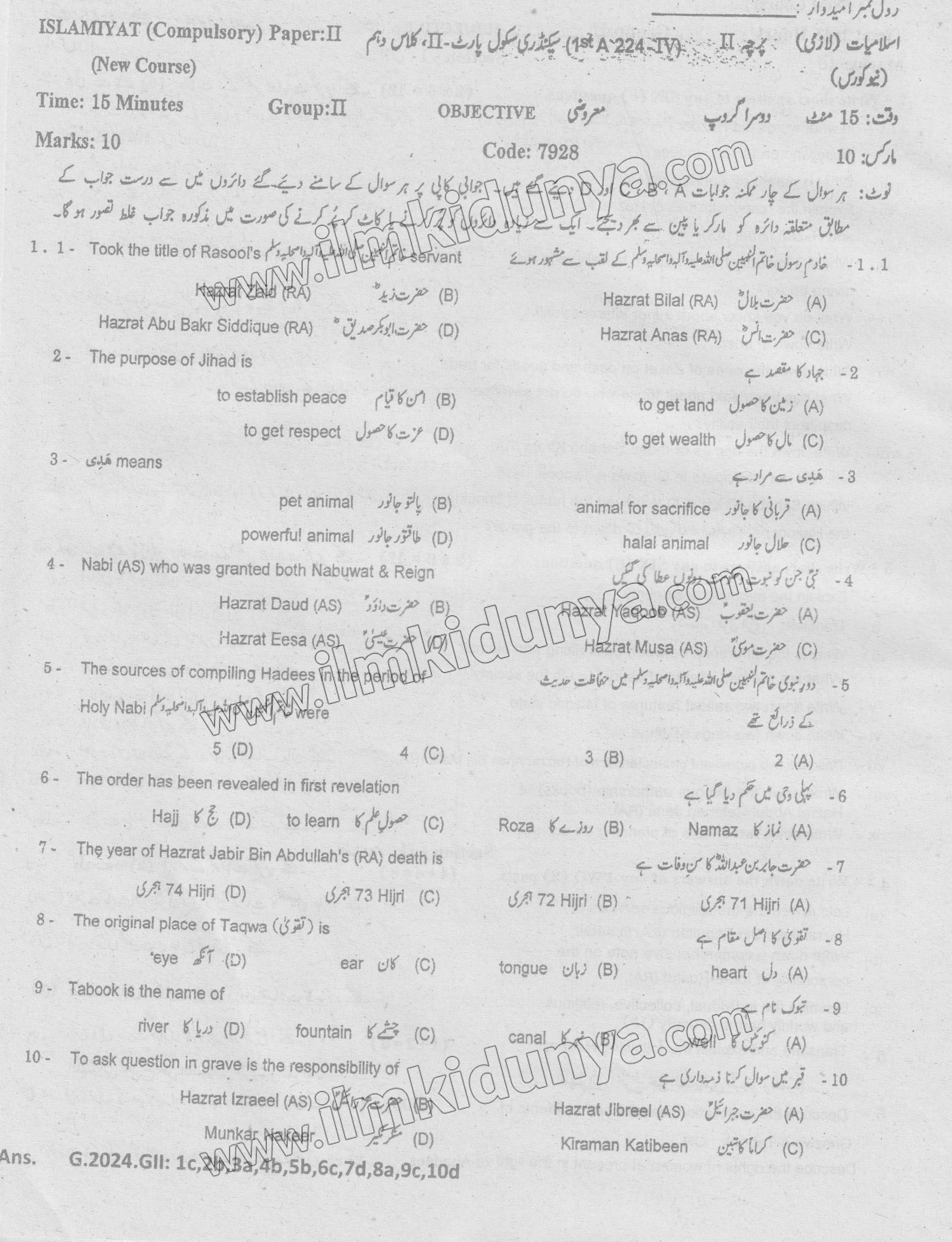 | 10th Class Islamiat Subjective Group 2 | View/Download | View/Download |
