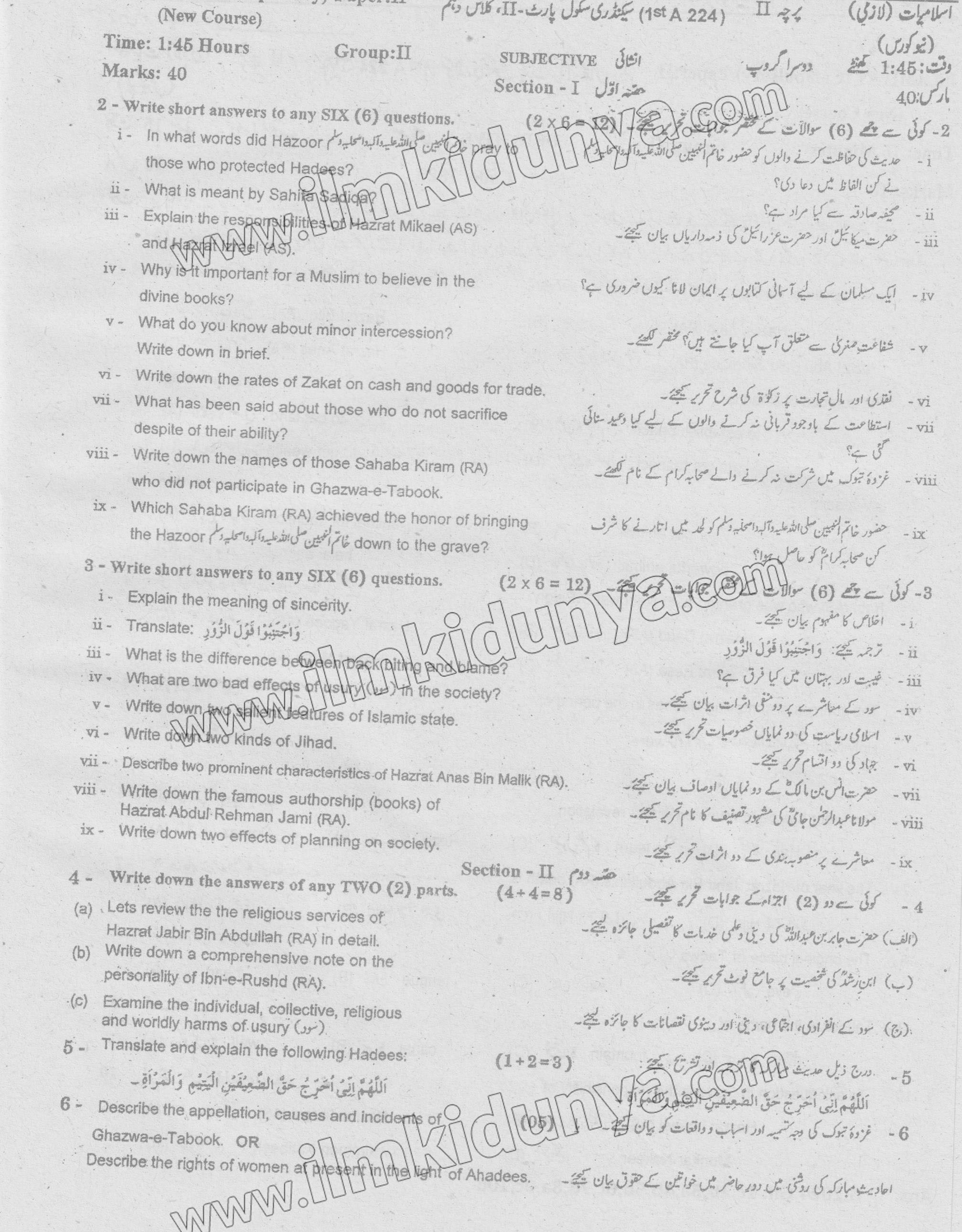 The 10th class islamiat past papers gujranwala board generally consist of the following sections: