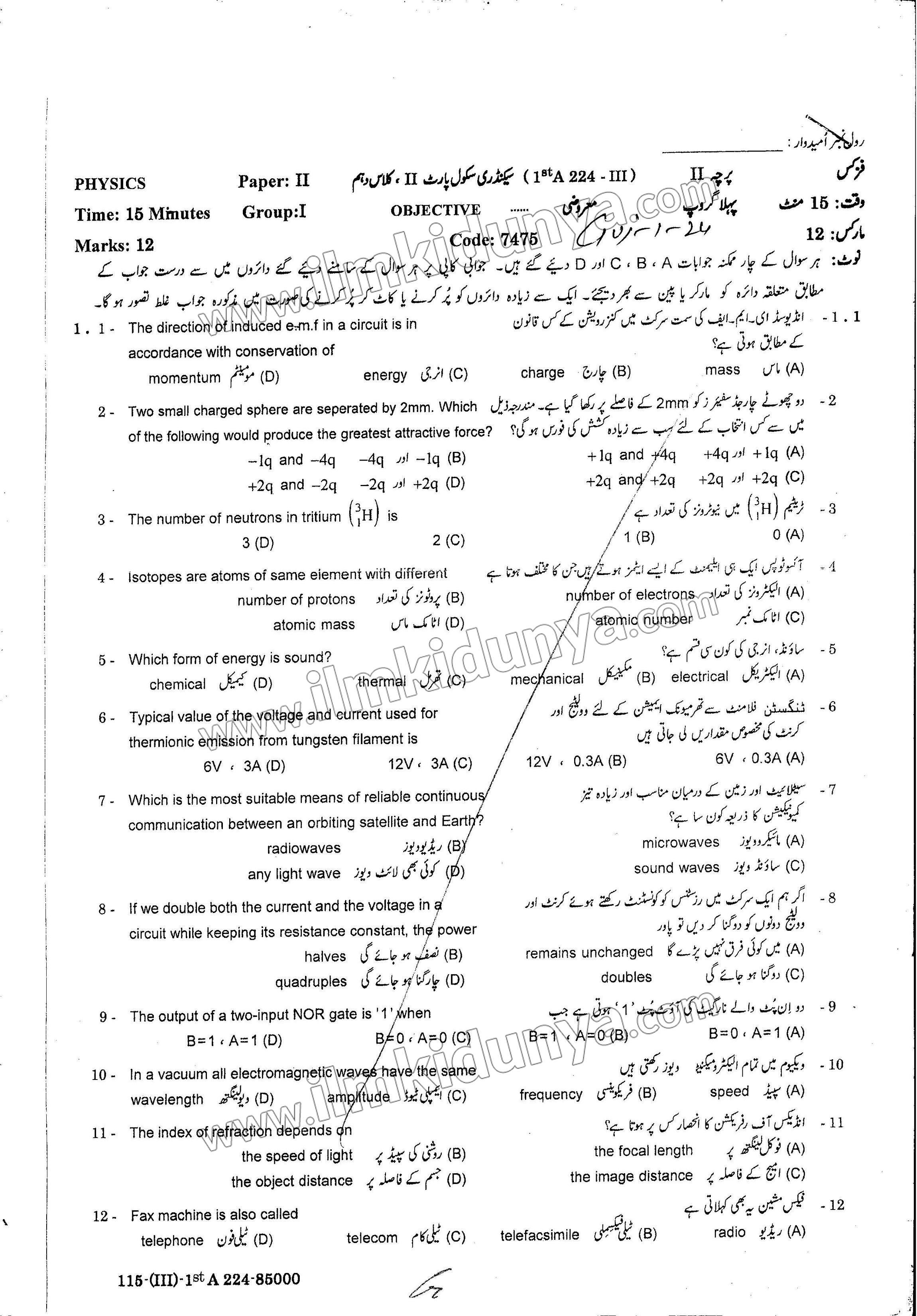 - The 10th Class Physics Past Papers Gujranwala board are available.