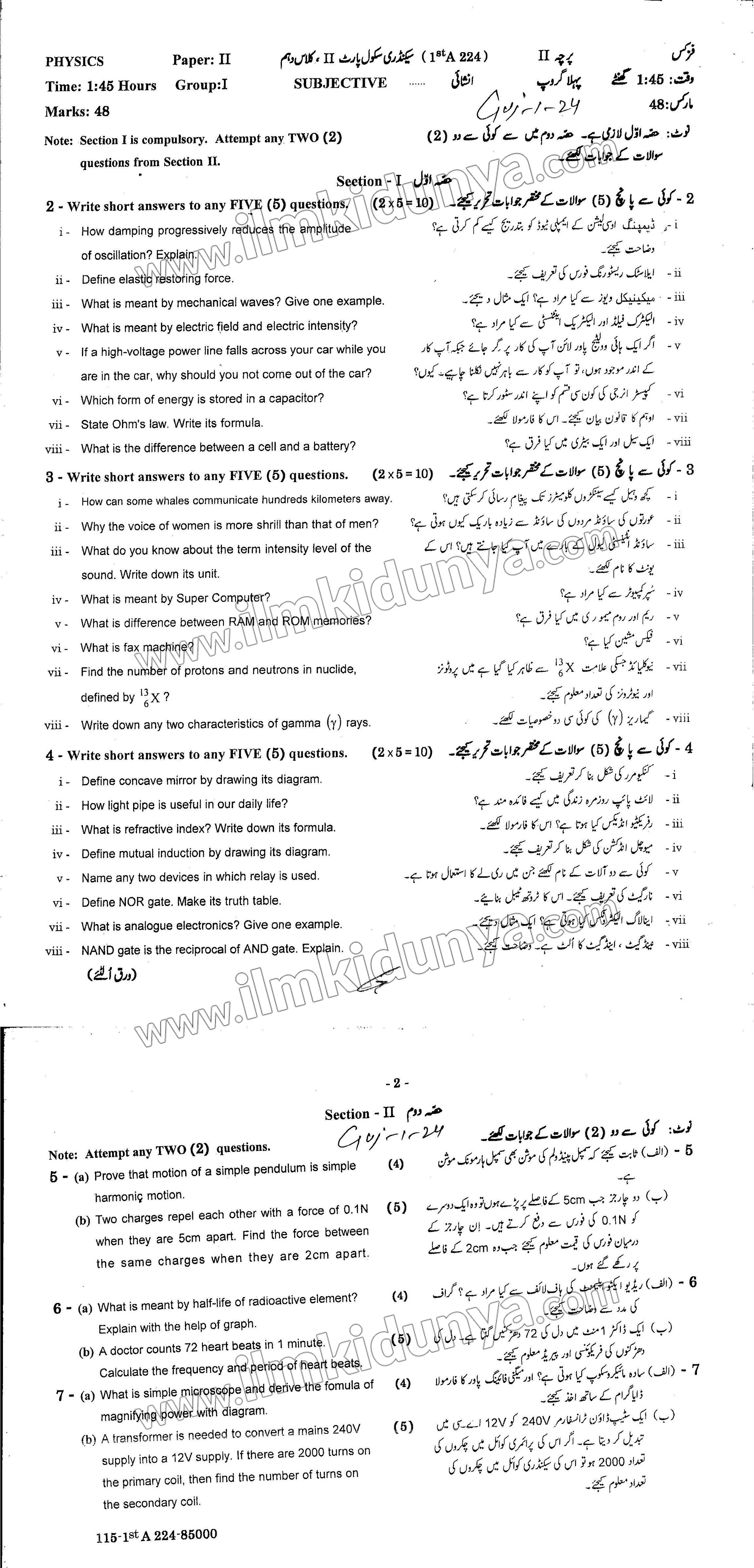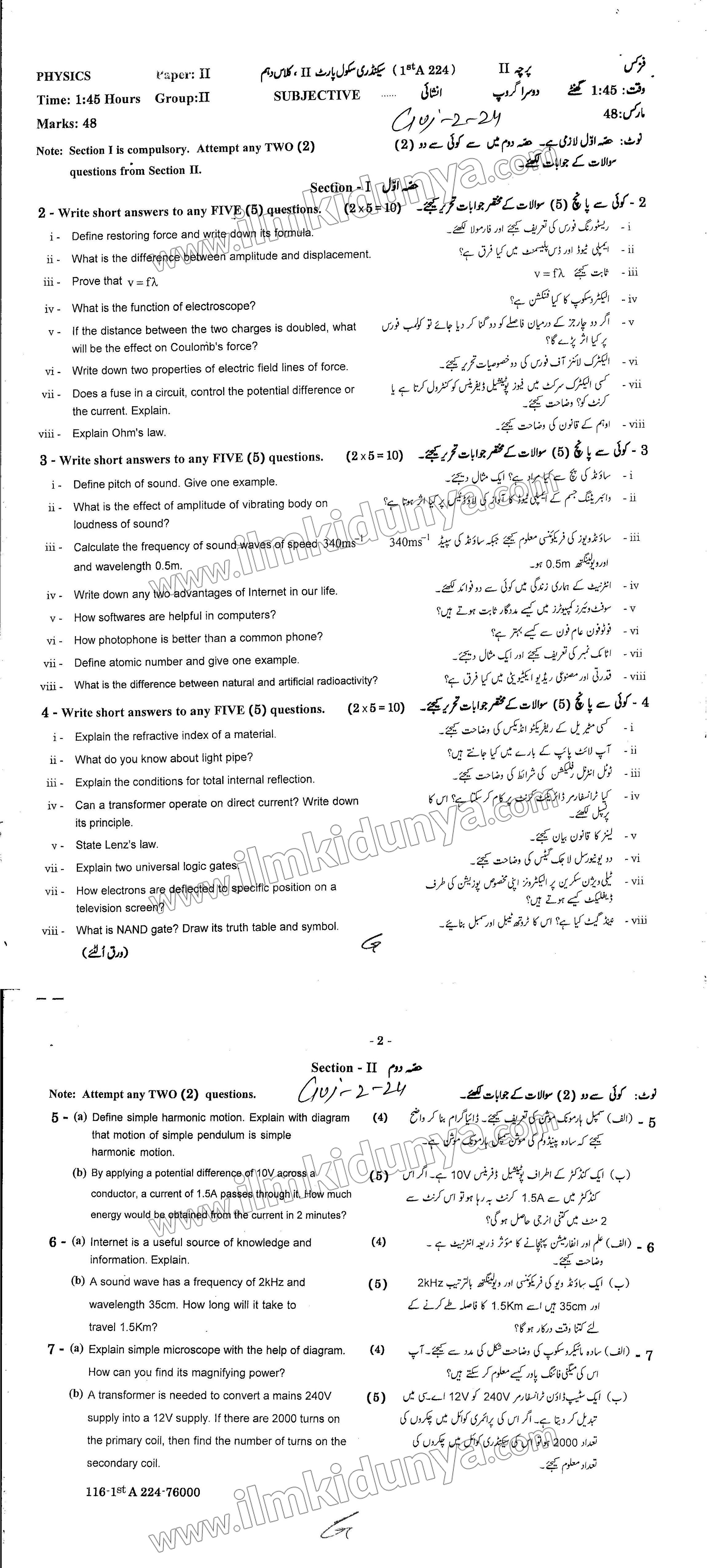 | 10th Class Physics Subjective Group 2 | View/Download | View/Download |