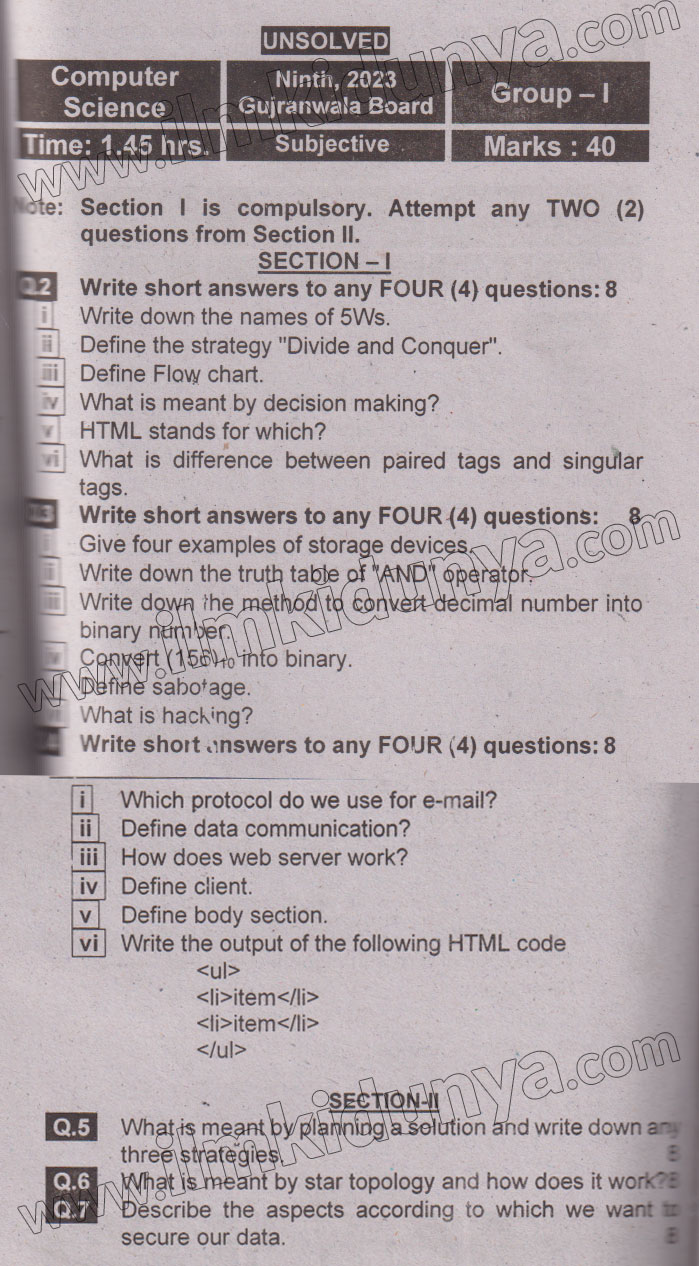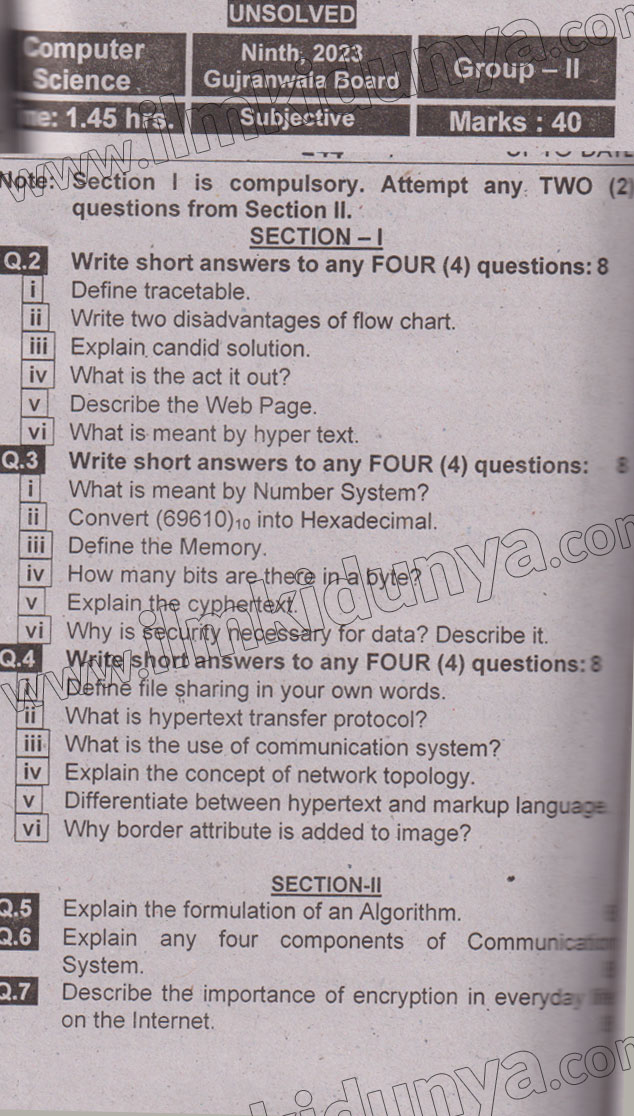 - Solving past paper 9th class Computer Science Gujranwala board gives you a clear idea of the exam structure, question types, and marks distribution.