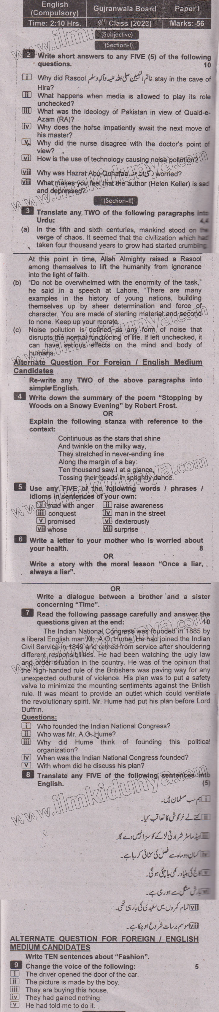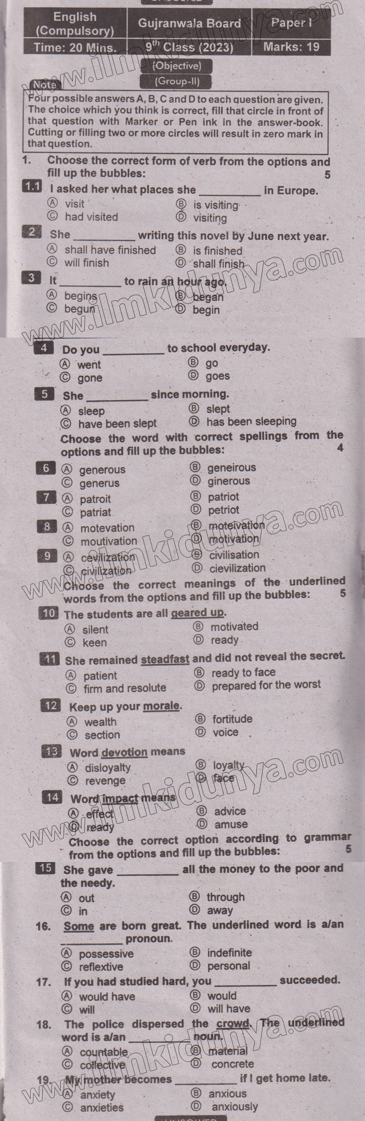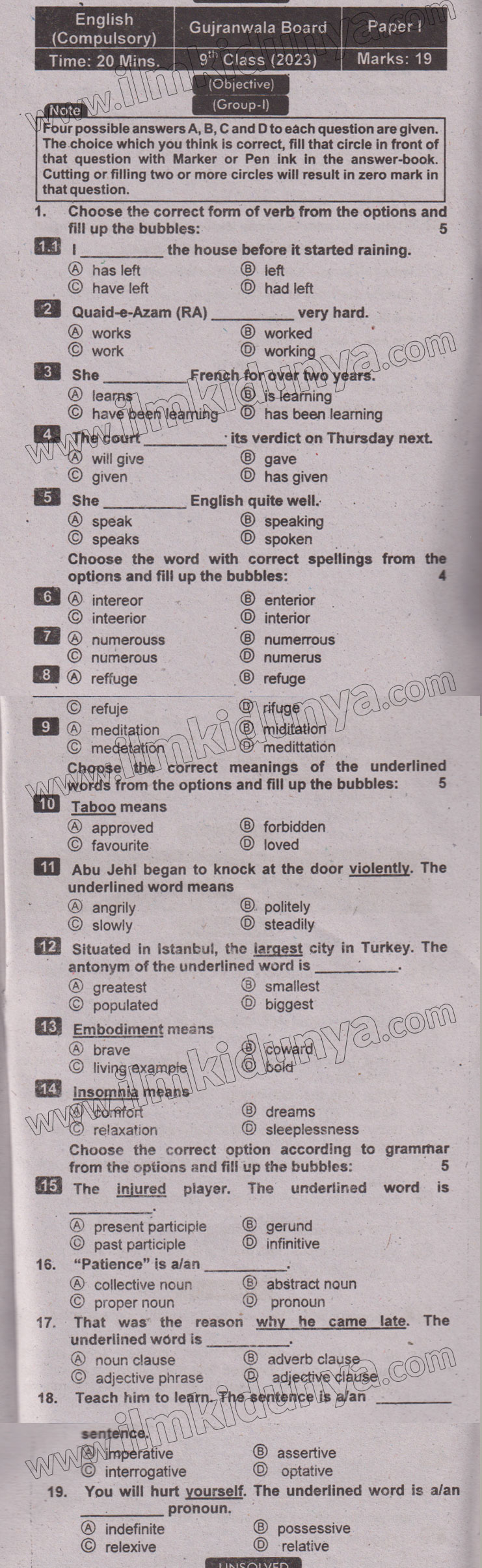 - Availability: Gujranwala Board 9th Class English Past Papers are now available on our website.