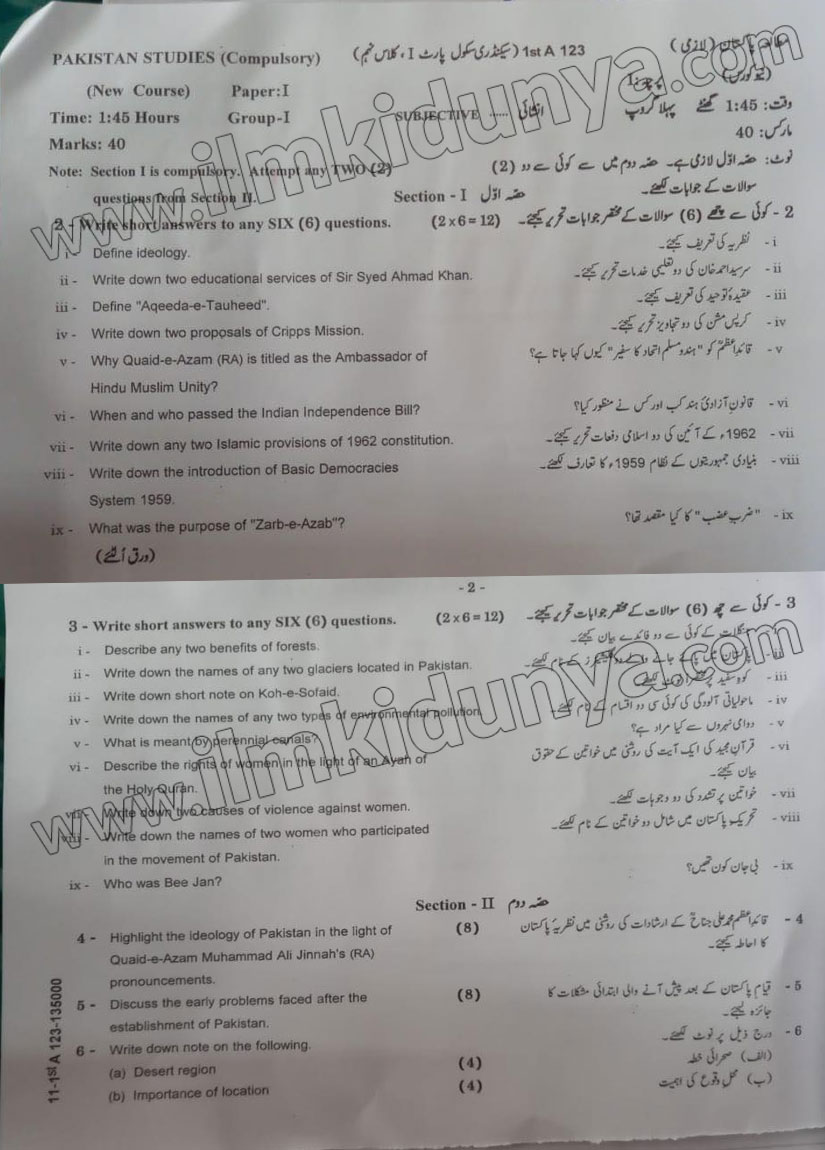 Past papers 9th class Gujranwala board Pak Studies many questions get repeated year to year. Identifying these repeating questions will make it easier to narrow your focus onto those topics of higher importance while assuring better preparedness towards a similar set of questions coming up in the exams.