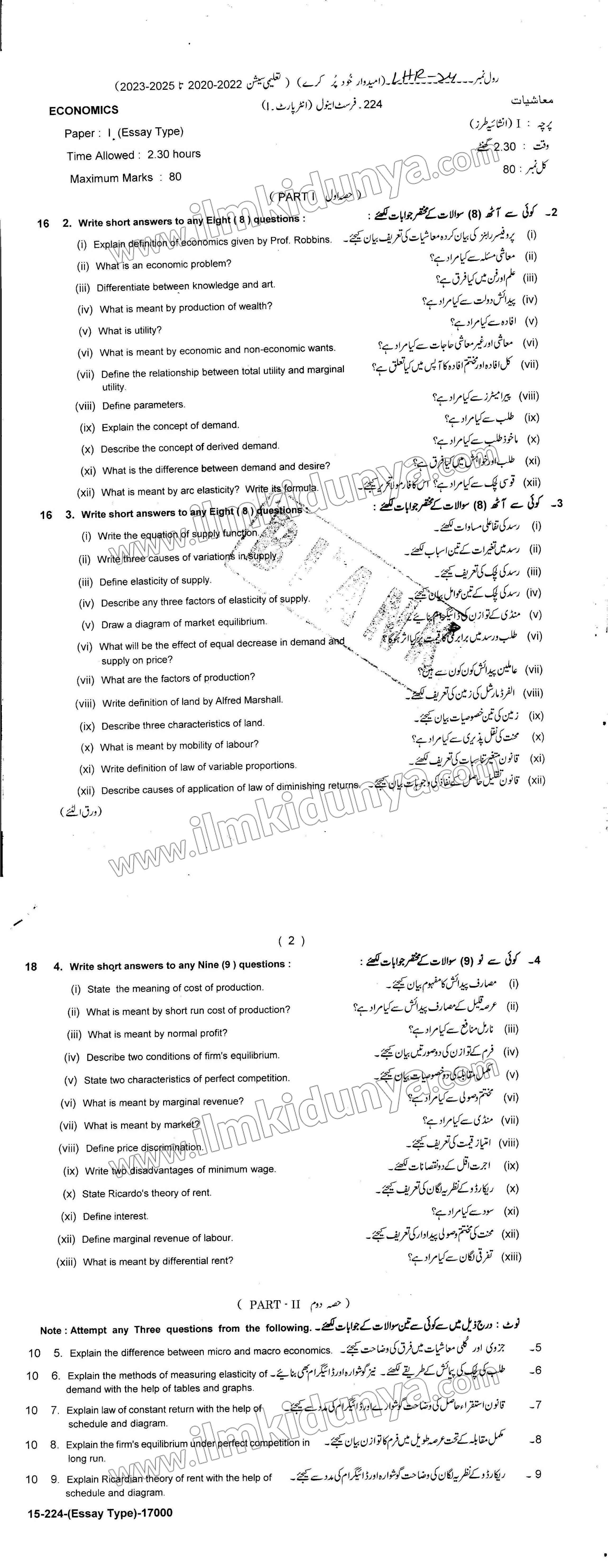 Free Lahore Board 11th class Economics past papers boost your potential. Such papers are designed in a way to present 11th-class students with the central exam concepts for better examination preparation. Use them as practice material and gain confidence ahead of your upcoming exams. To download, just click on the download button below the tables, and your download will start right away. Start your journey to success today!