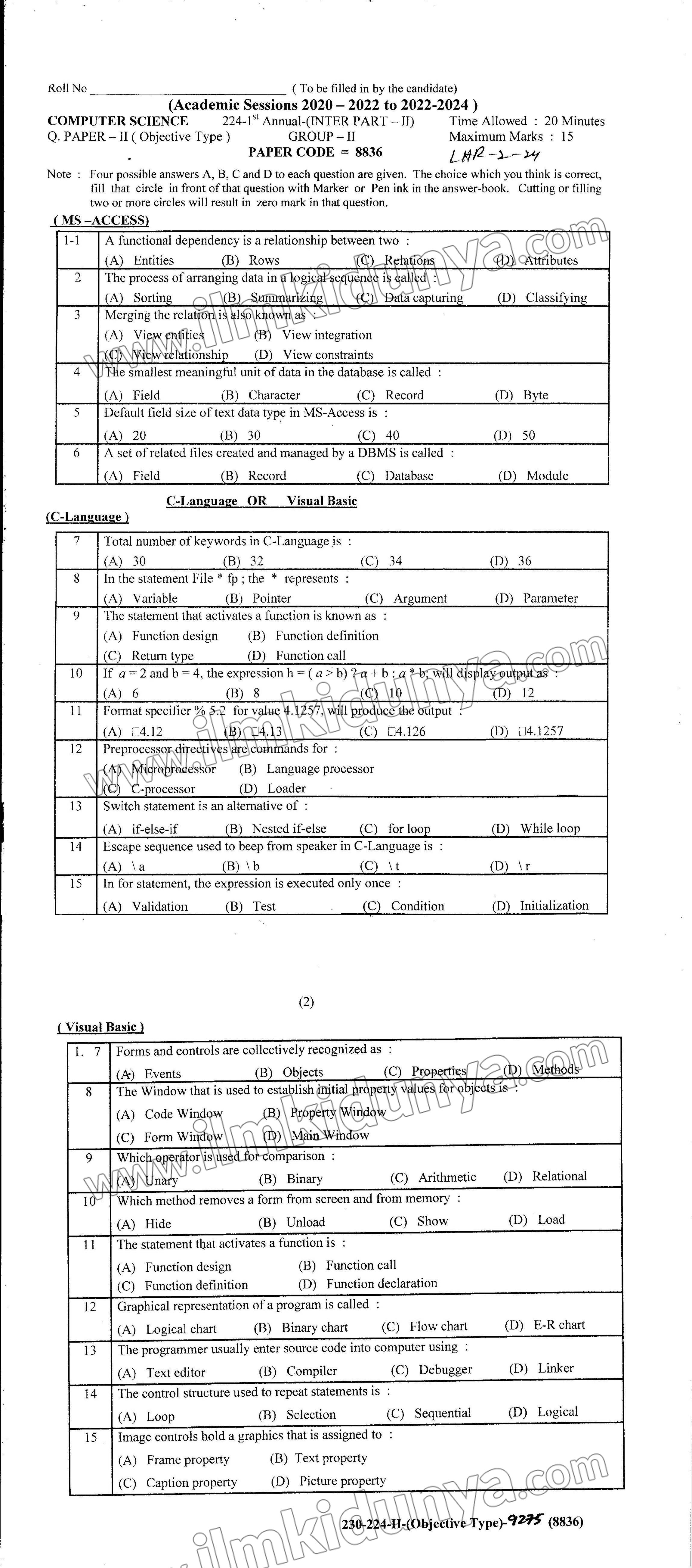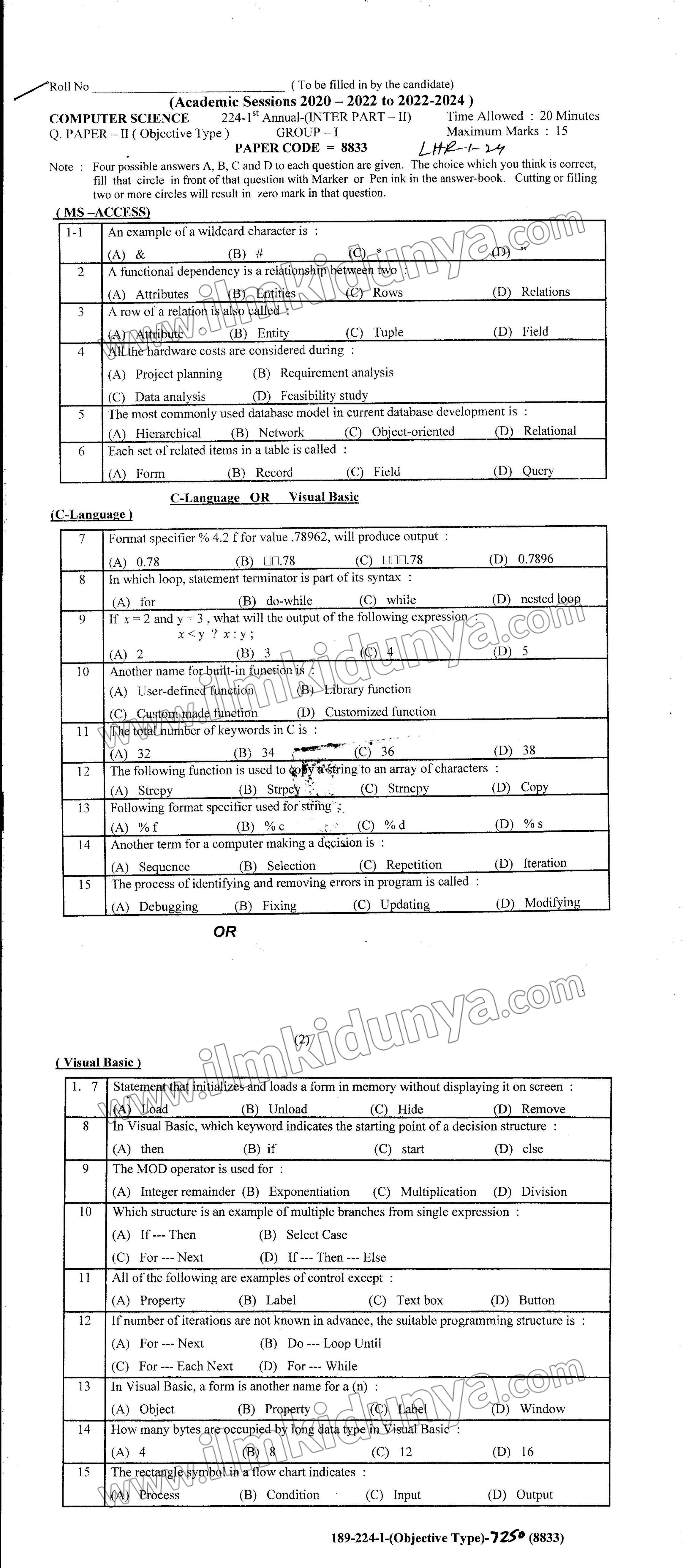 | 12th class Computer Science Objective Group 1 | View/Download |