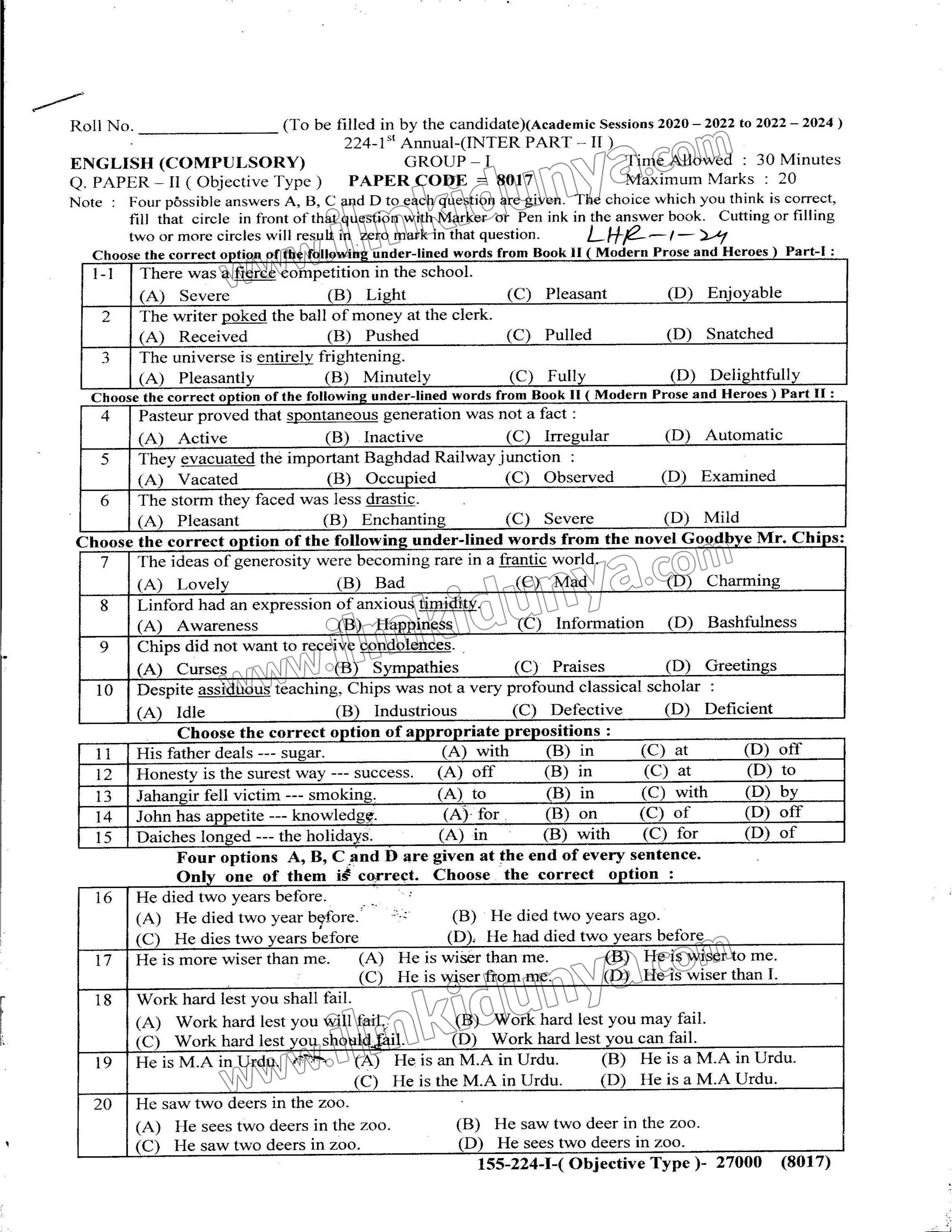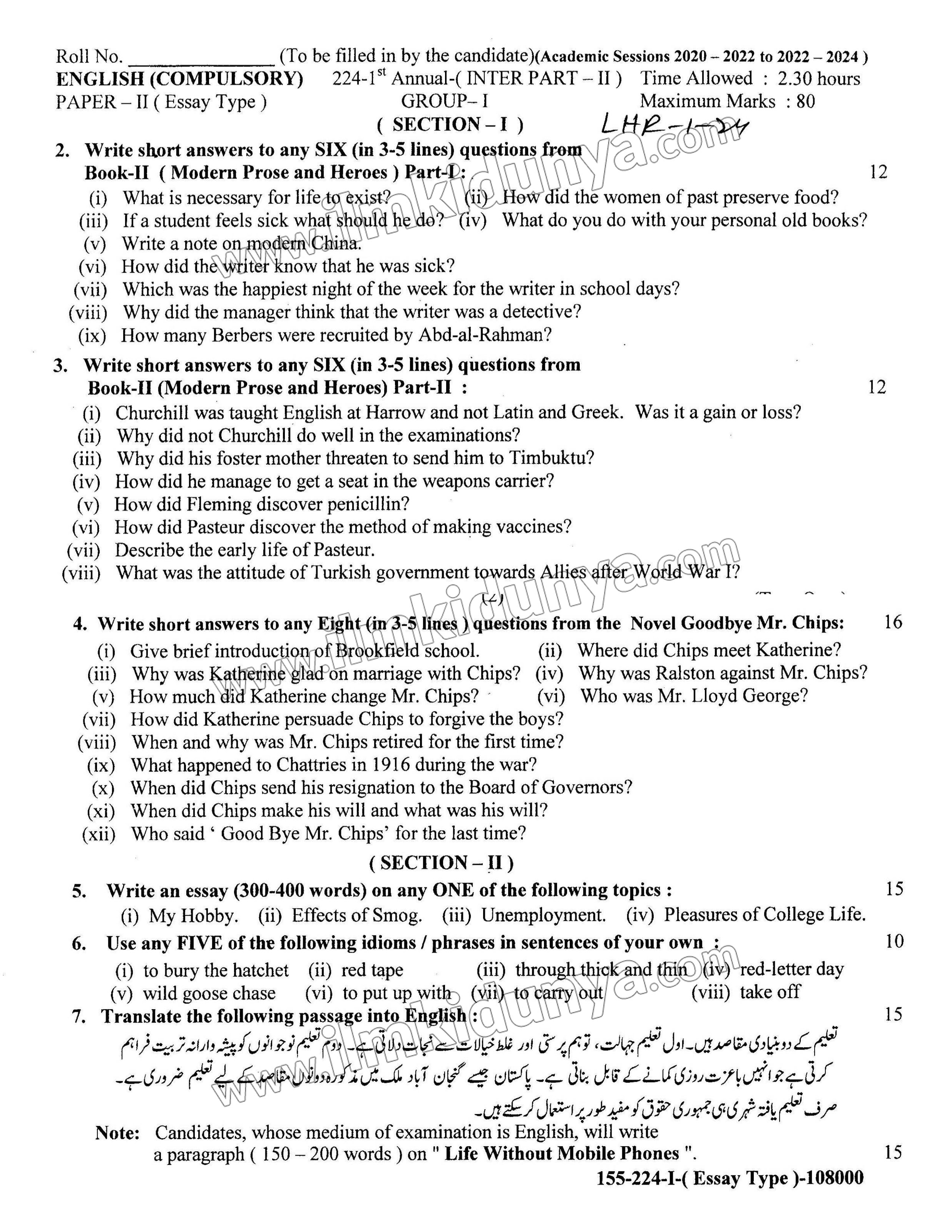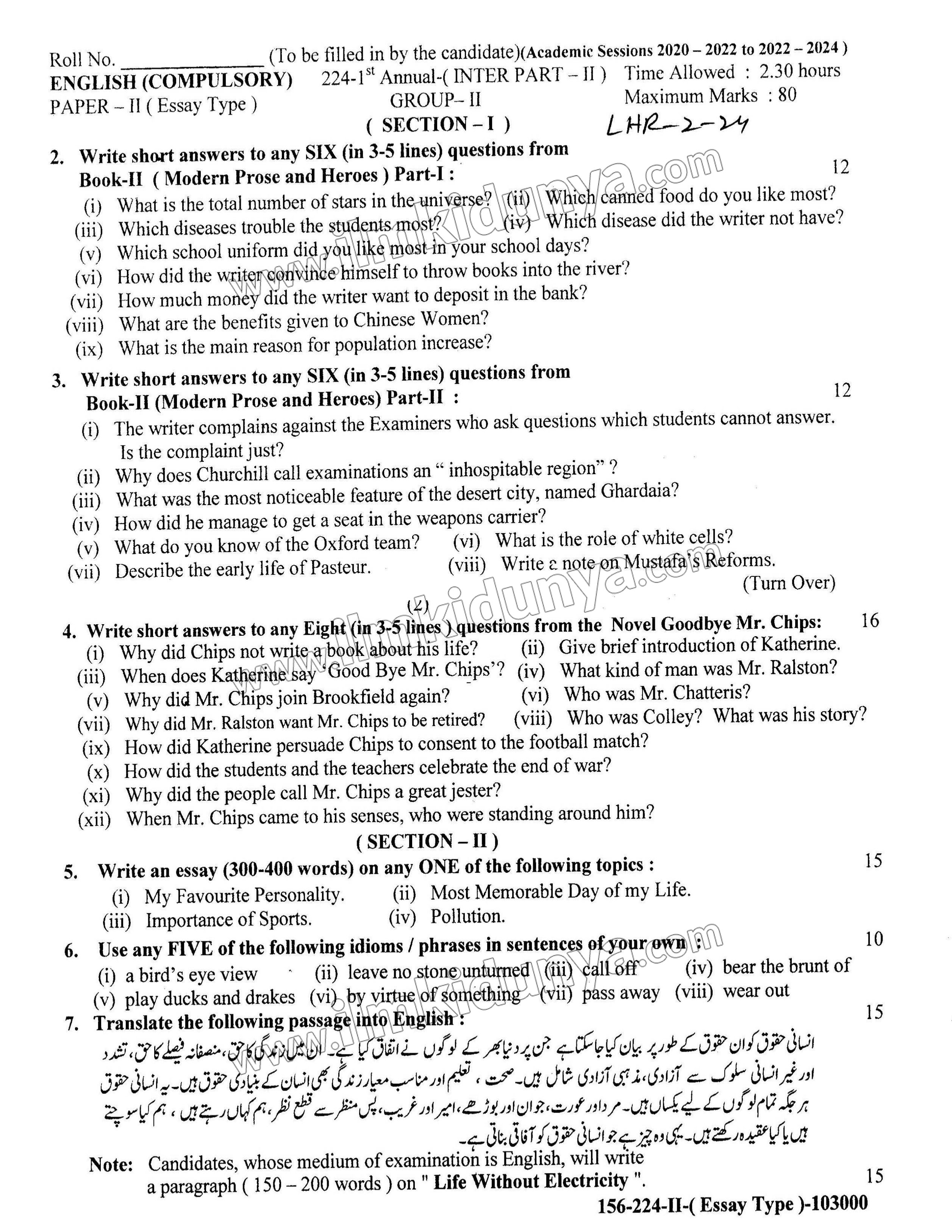 - Gather Resources: Collate all the available second year English past papers from the Lahore Board.