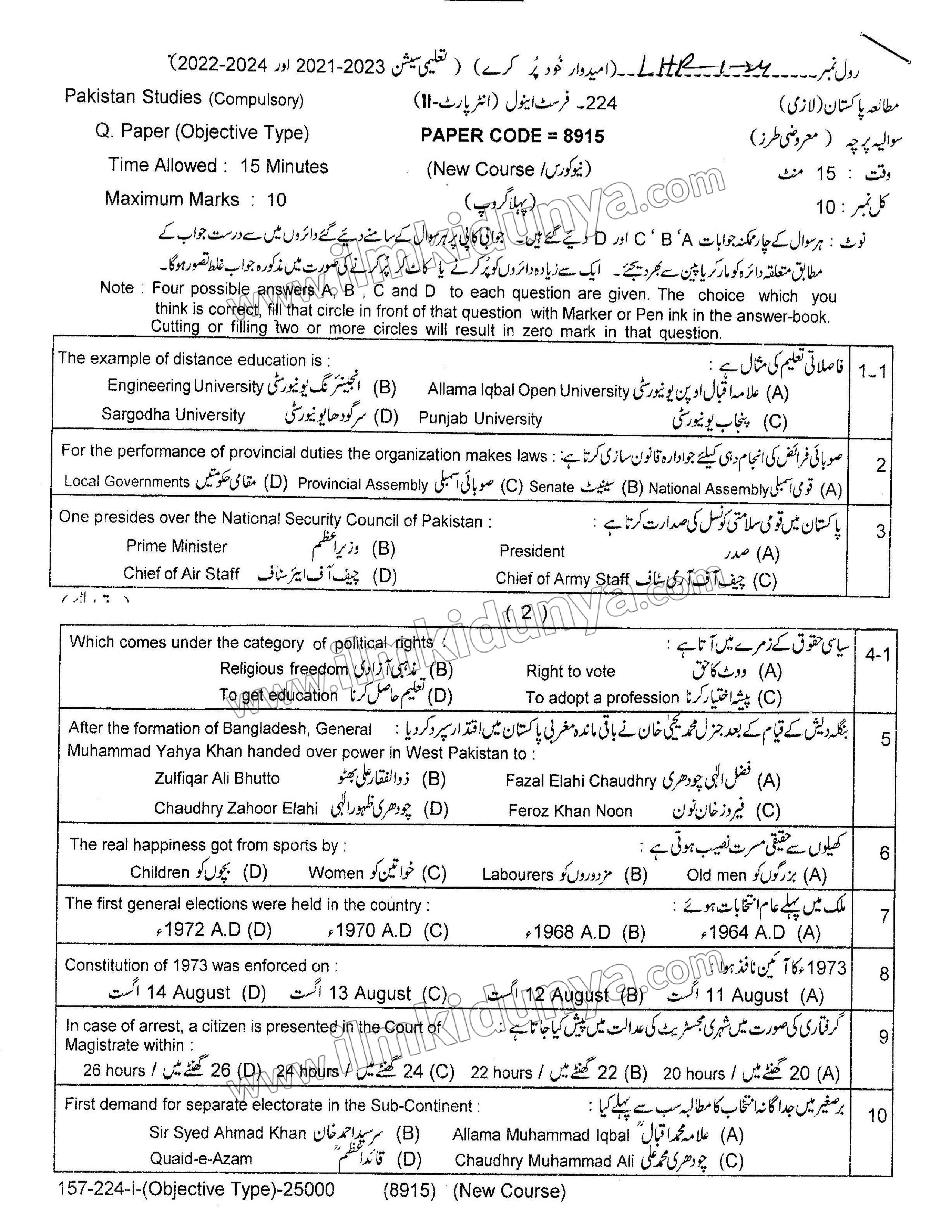 | 12th class Pak Studies Objective Group 1 | View/Download |