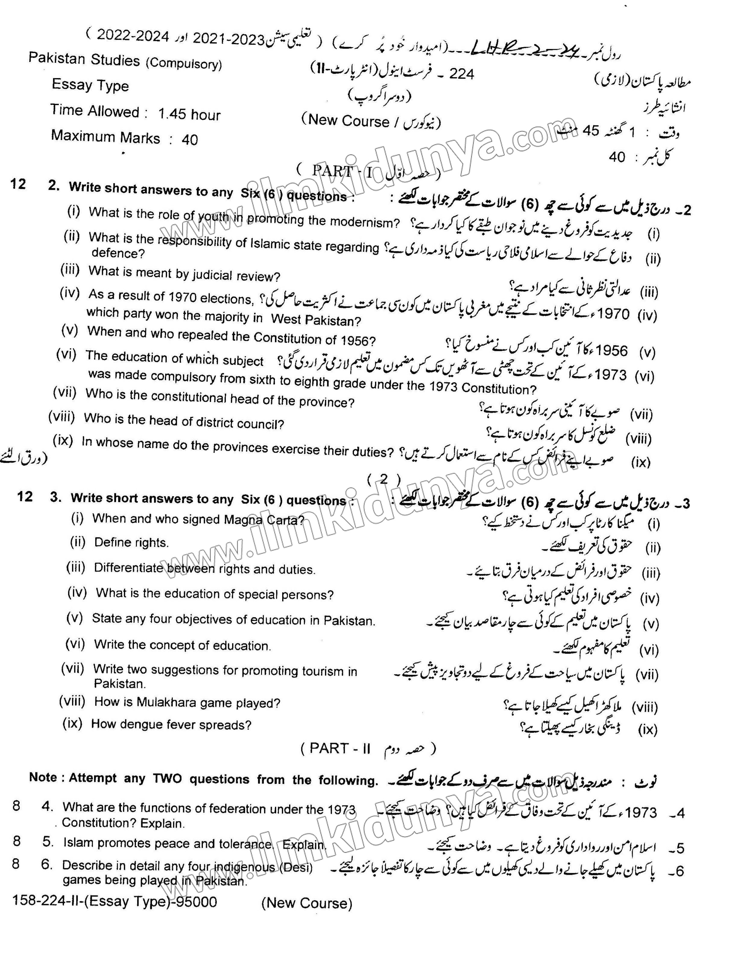 | 12th class Pak Studies Subjective Group 2 | View/Download |